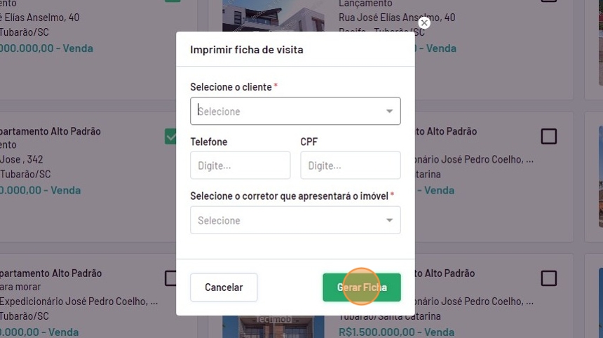 Para imprimir uma ficha de visita no sistema Tecimob, siga estes passos: