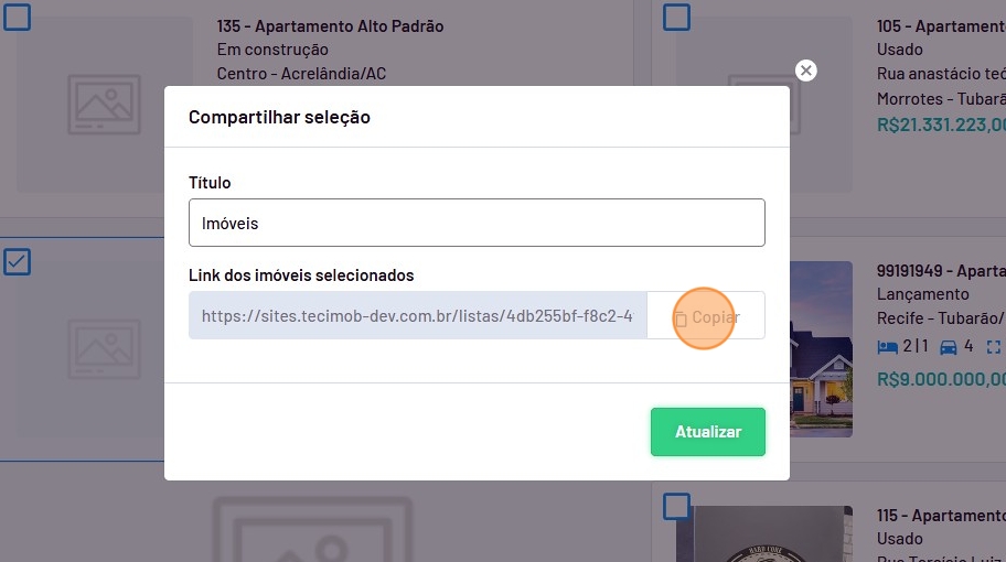 Para gerar um link dos imóveis cadastrados, siga estes passos: