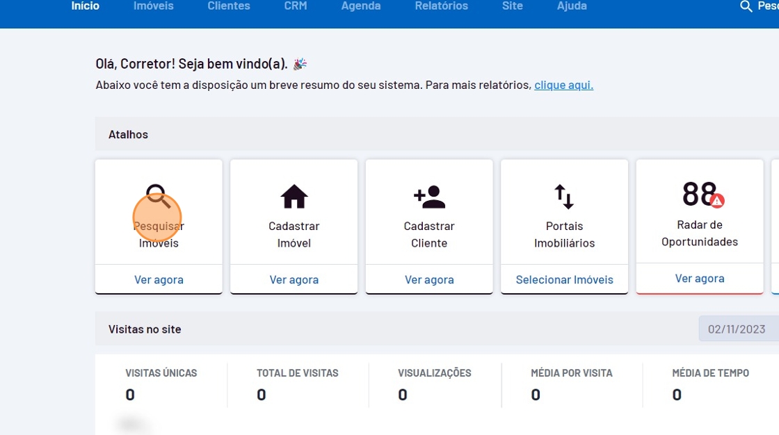 - Na página inicial do sistema, clique em "Pesquisar Imóveis".