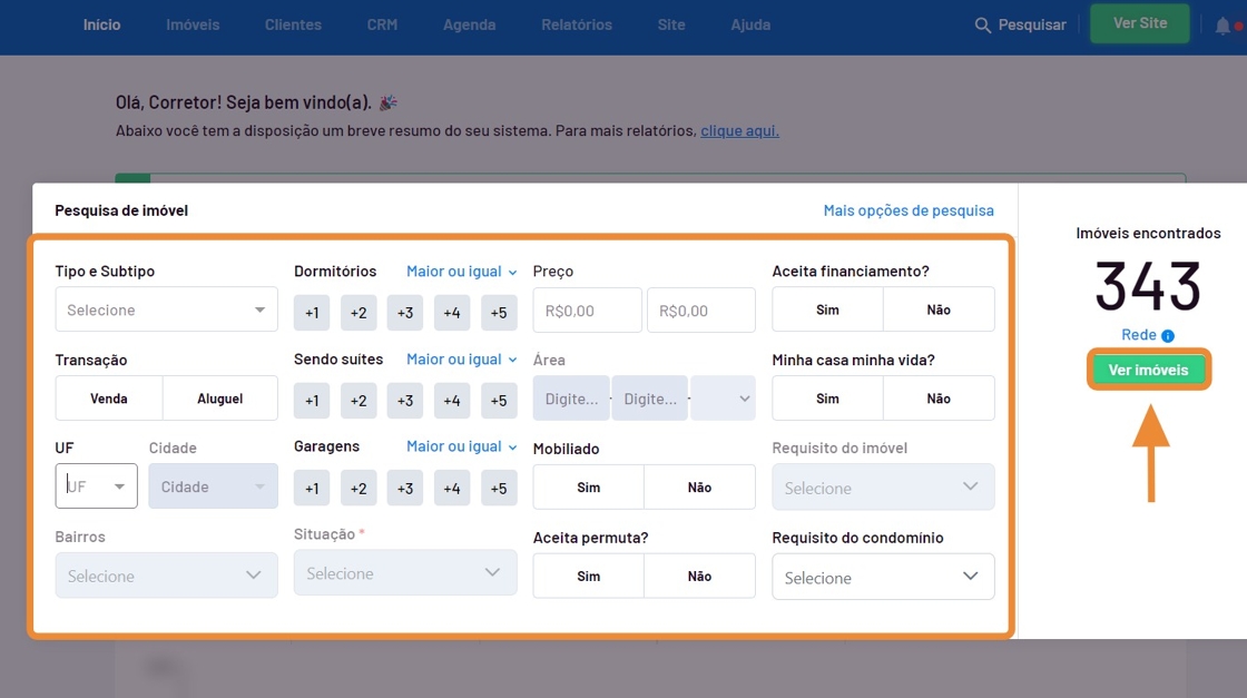 - Realize um filtro para encontrar os imóveis desejados e clique em "Ver imóveis".