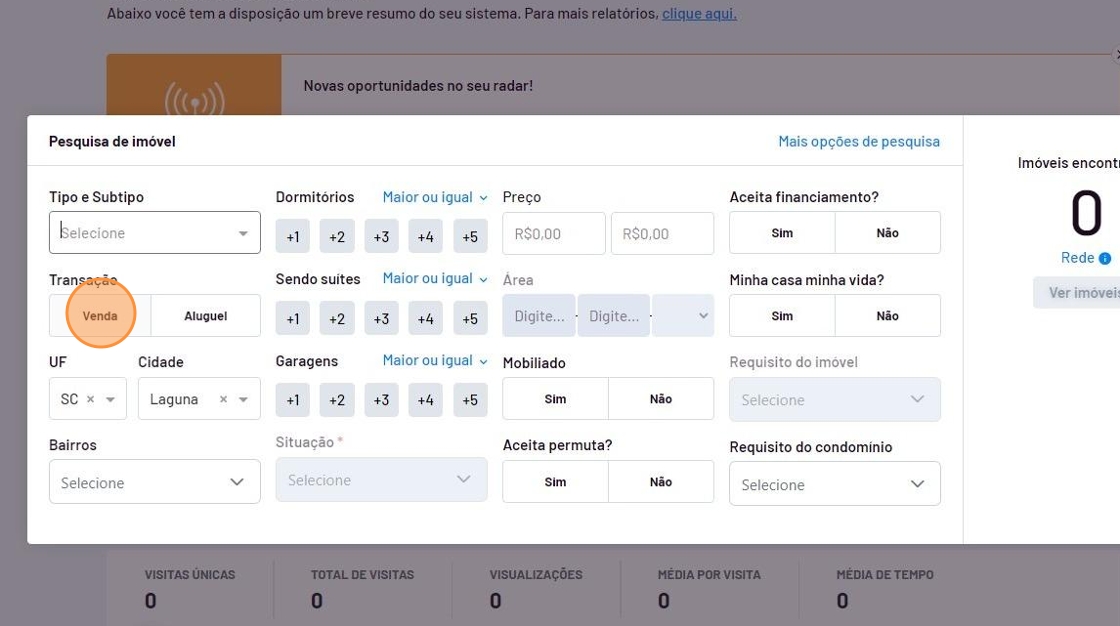 - Preencha o filtro de acordo com os imóveis que deseja encontrar.