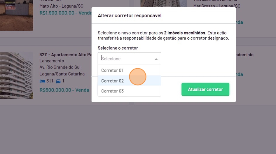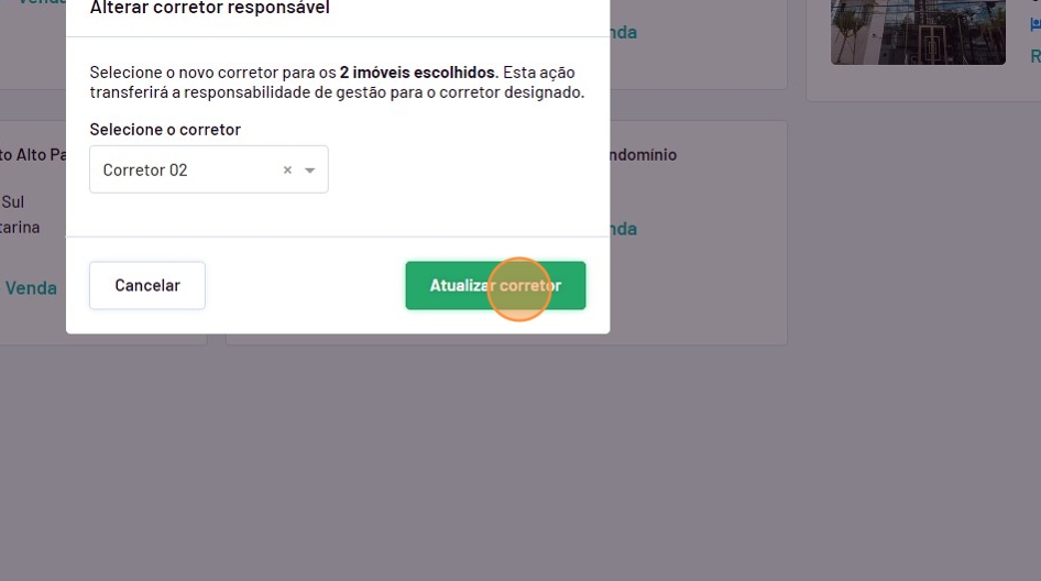 Para alterar o corretor responsável pelo imóvel, siga estes passos: