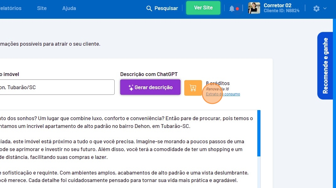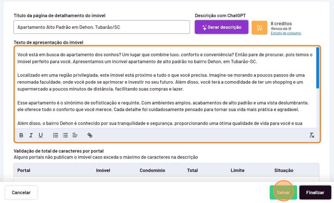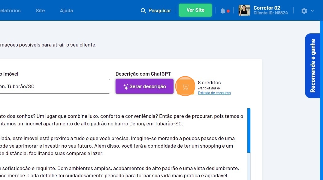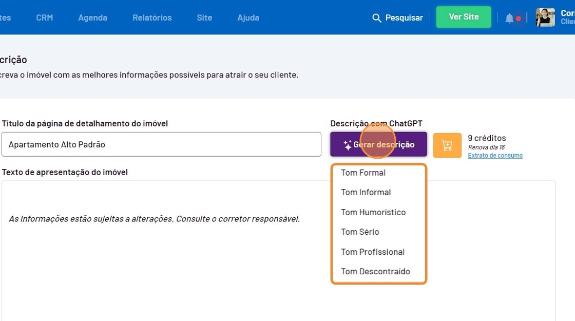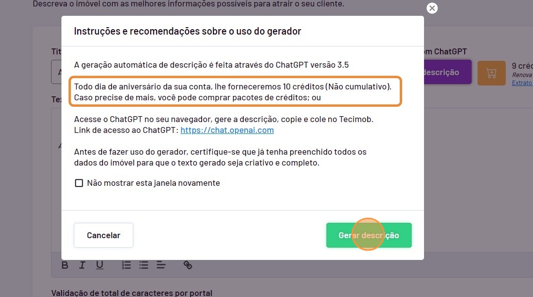 Parar gerar uma descrição do imóvel com o ChatGPT, siga estes passos: