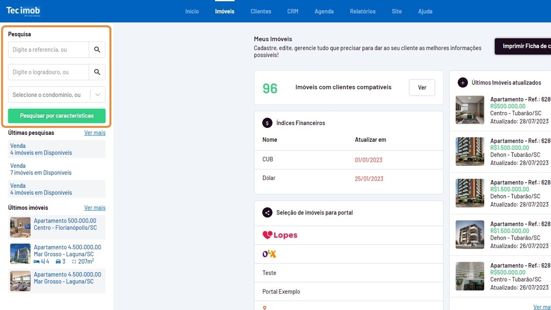 - Utilize uma das opções do filtro no menu do canto esquerdo para localizar o imóvel.