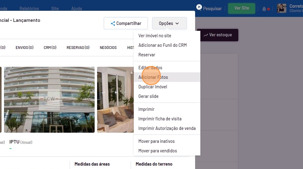 - Após localizar o imóvel, clique em "Adicionar Fotos".