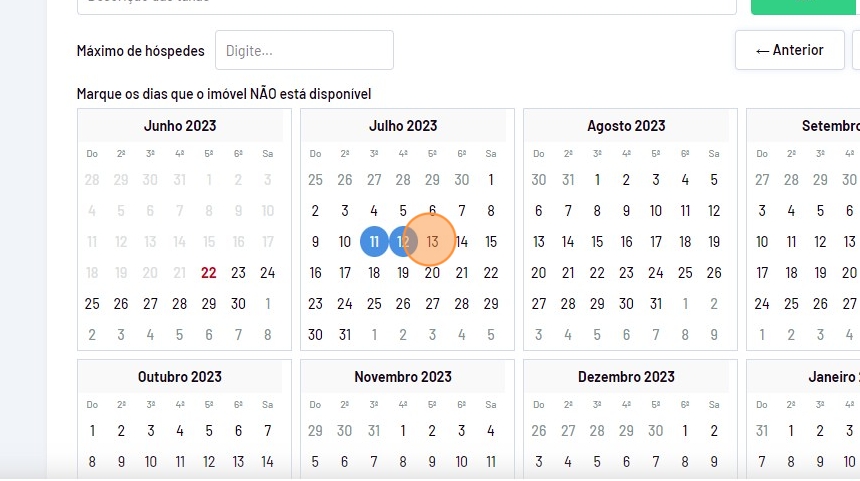 - E selecione os dias na qual este imóvel NÃO estará disponível para locação.