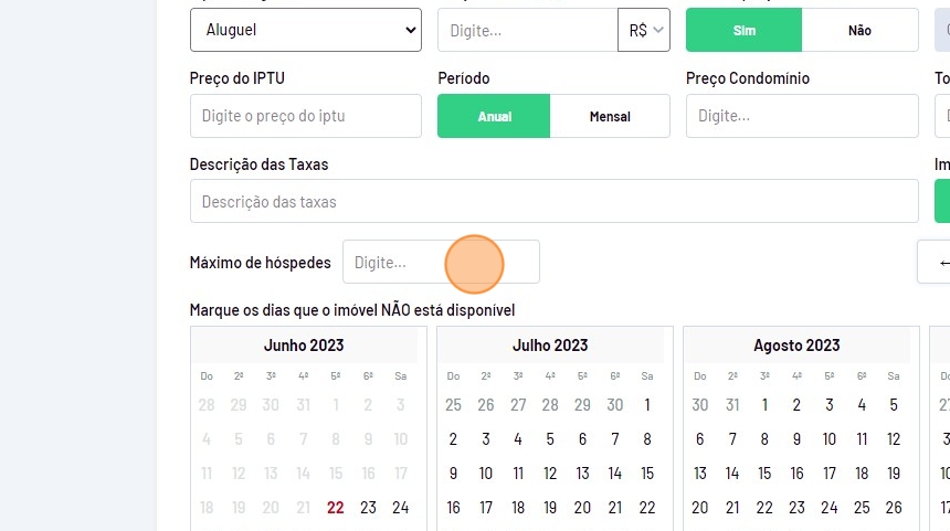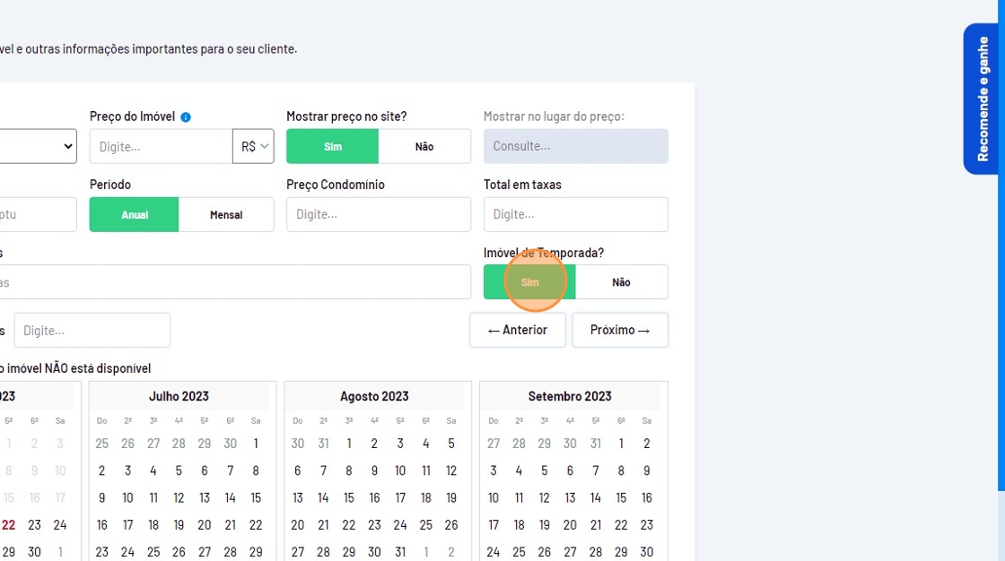 - Em "Imóvel de Temporada?" clique em "Sim".