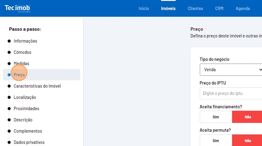Para cadastrar um imóvel de temporada no sistema Tecimob, siga estes passos: