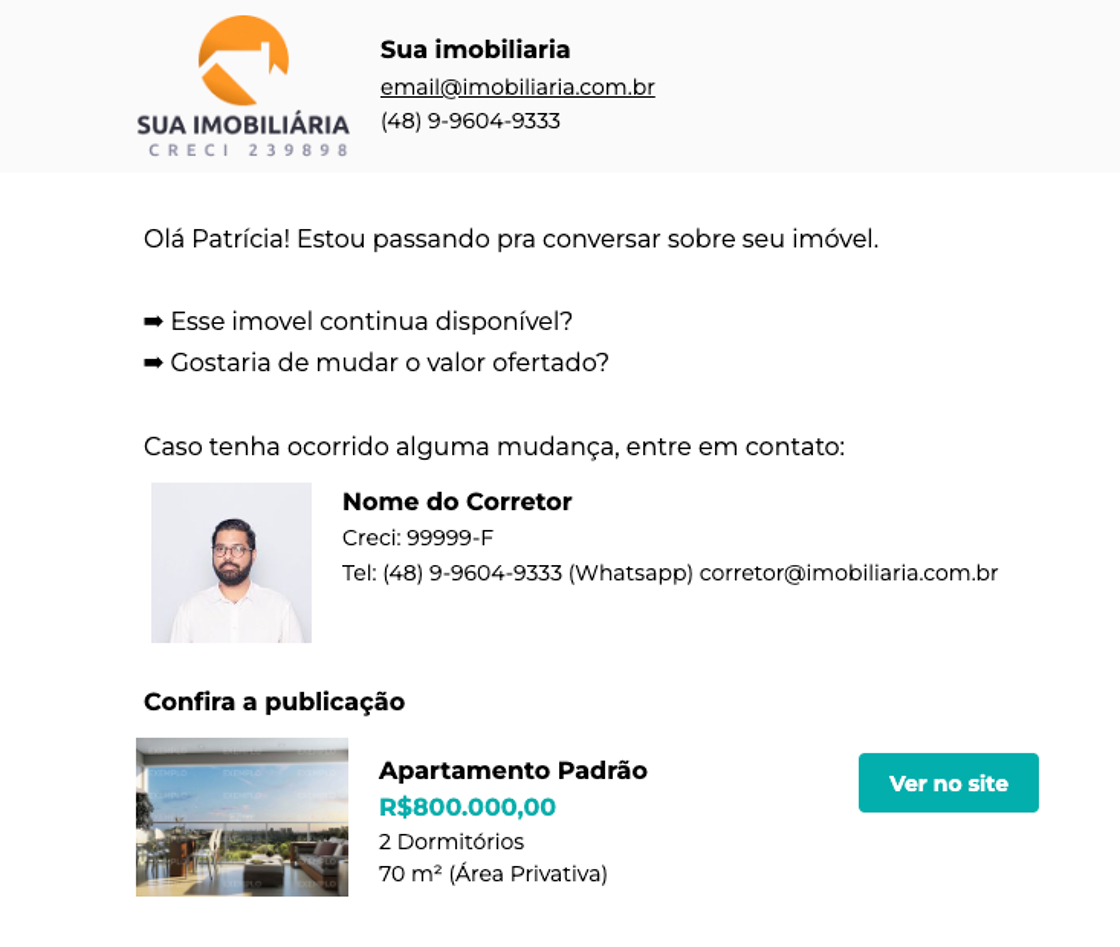 Veja abaixo um exemplo do e-mail que será enviado para o proprietário: