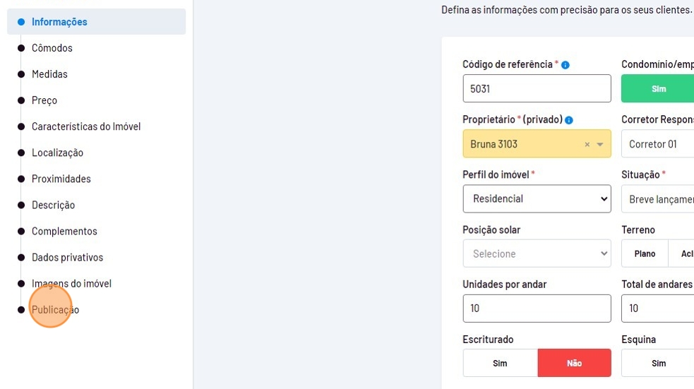 - No menu do canto esquerdo da tela, clique em “Publicação”.