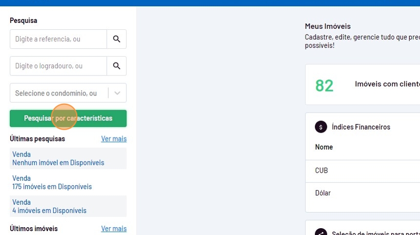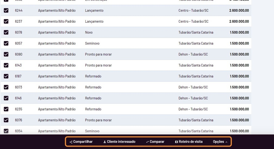 - Após selecionar os imóveis, você terá acesso à barra de ações que aparecerá na parte inferior da sua tela.