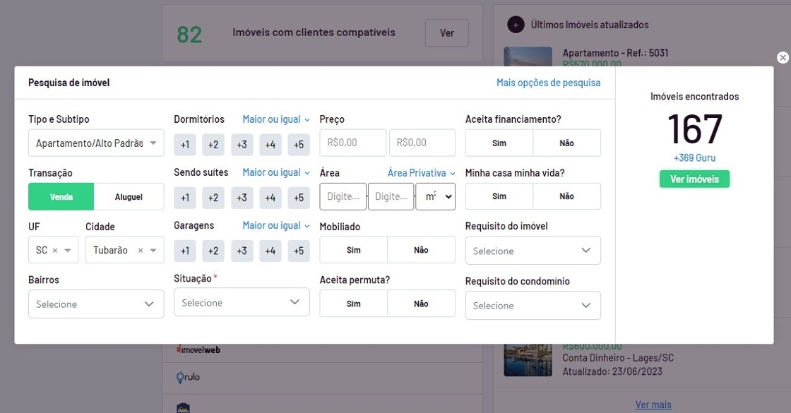 - Preencha o filtro para encontrar os imóveis que deseja.