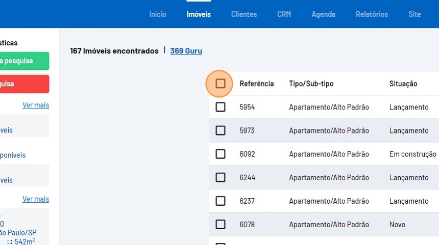 - Clique na primeira caixinha de seleção para selecionar todos os imóveis listados: