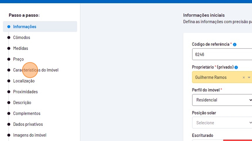 - No menu do canto esquerdo, clique em "Características do Imóvel".