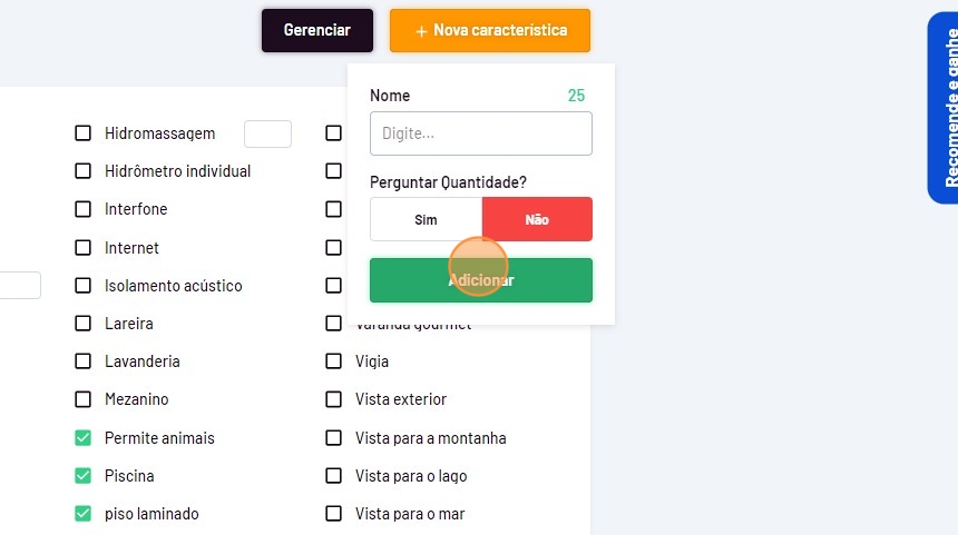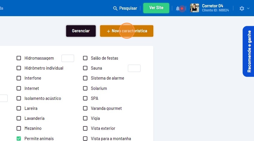 Não esqueça de salvar a edição caso insira esta característica a um imóvel.