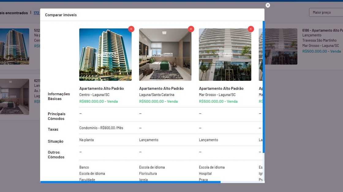 - E faça com um comparativo lado a lado das características dos seus imóveis.