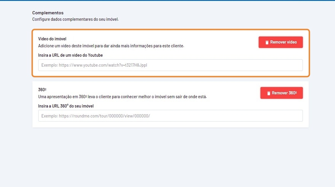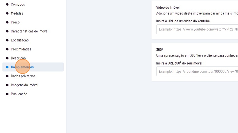 Para inserir um vídeo e um Tour Virtual no imóvel, siga estes passos: