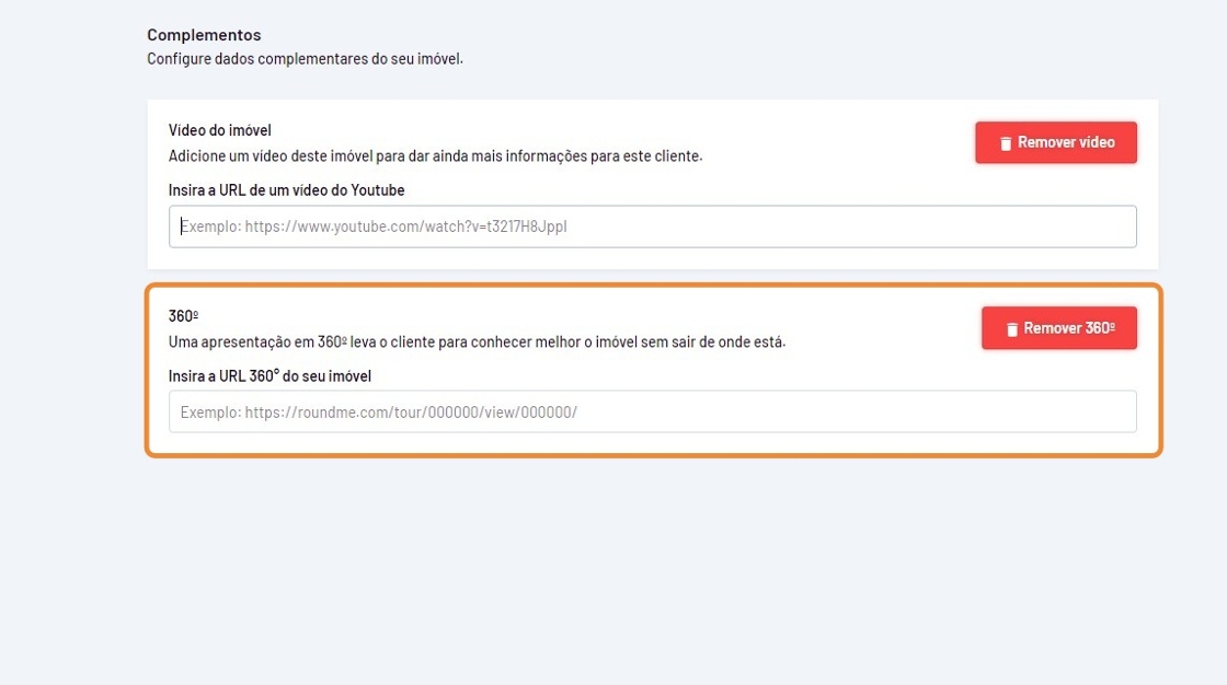 Alerta: Para o cadastro do Tour Virtual você precisa inserir o link no sistema.