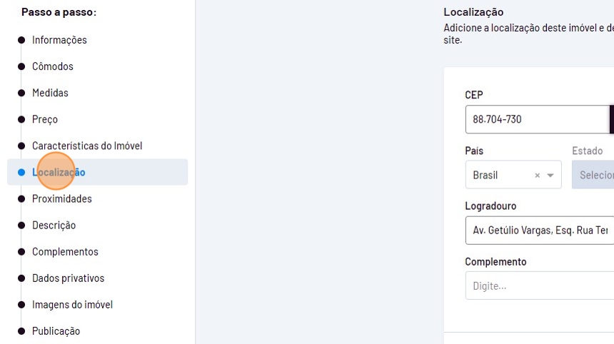 - No menu do canto esquerdo da tela, clique em "Localização".