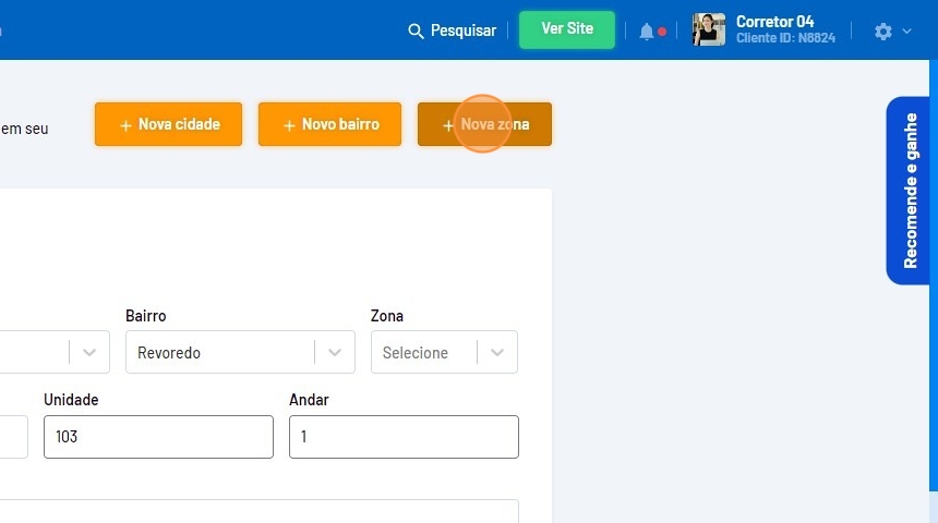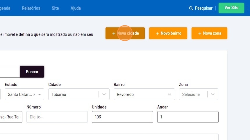Para cadastrar cidade, bairro ou zona no sistema Tecimob, siga estes passos:
