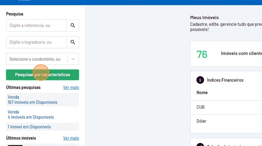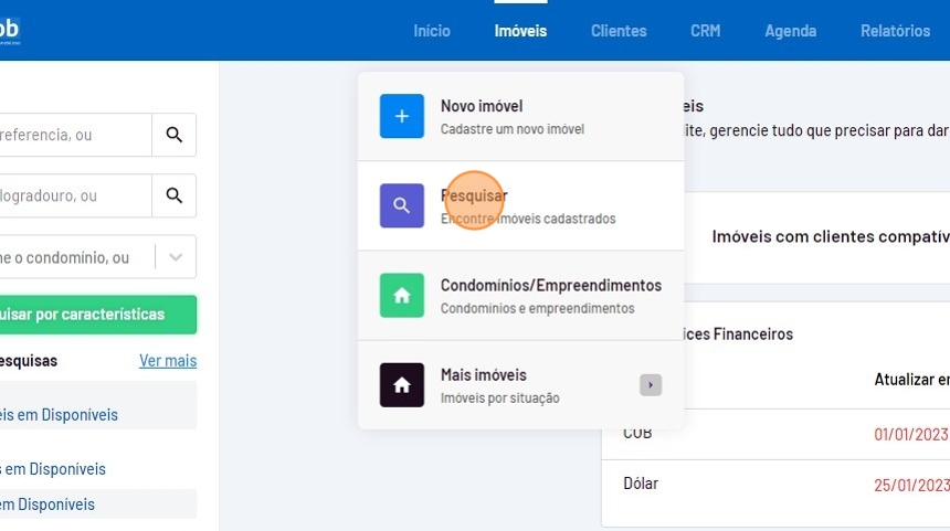 - Passe o mouse sobre o menu "Imóveis" e clique em "Pesquisar".