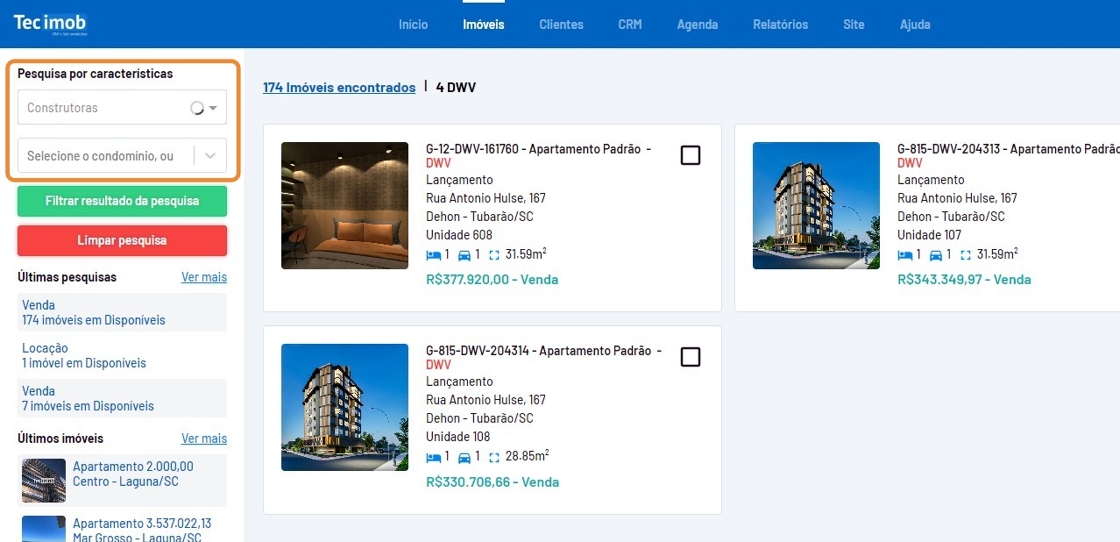 Para pesquisar imóveis da DWV no sistema Tecimob, siga estes passos:
