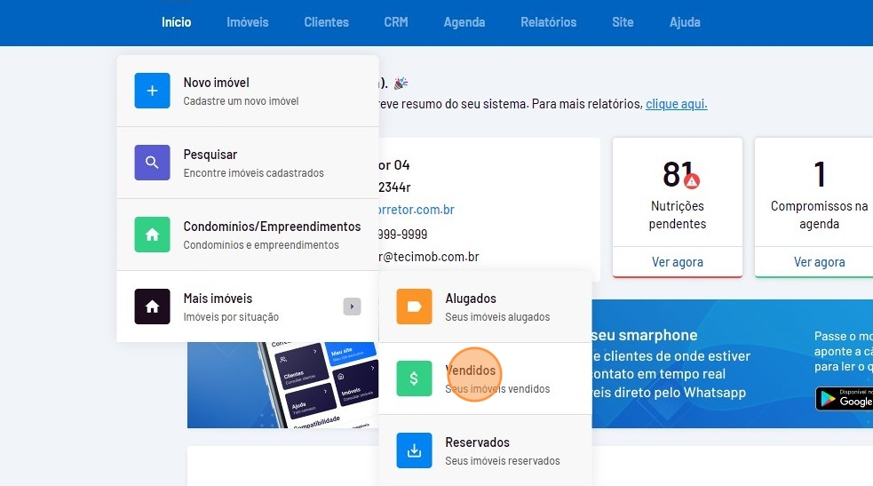 Para restaurar um imóvel vendido no sistema Tecimob, siga estes passos: