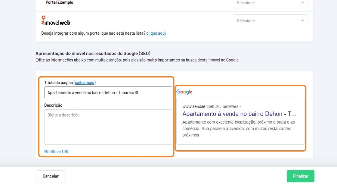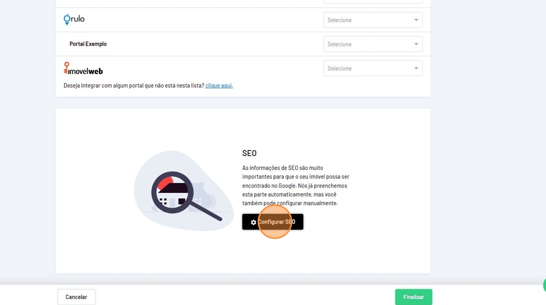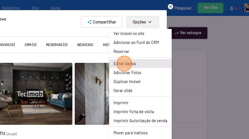 Para configurar o SEO do imóvel no sistema Tecimob, siga estes passos:
