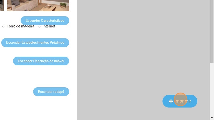 - Após encontrar o imóvel, clique sobre ele e passe o mouse em "Opções". Nas opções clique em "Imprimir".