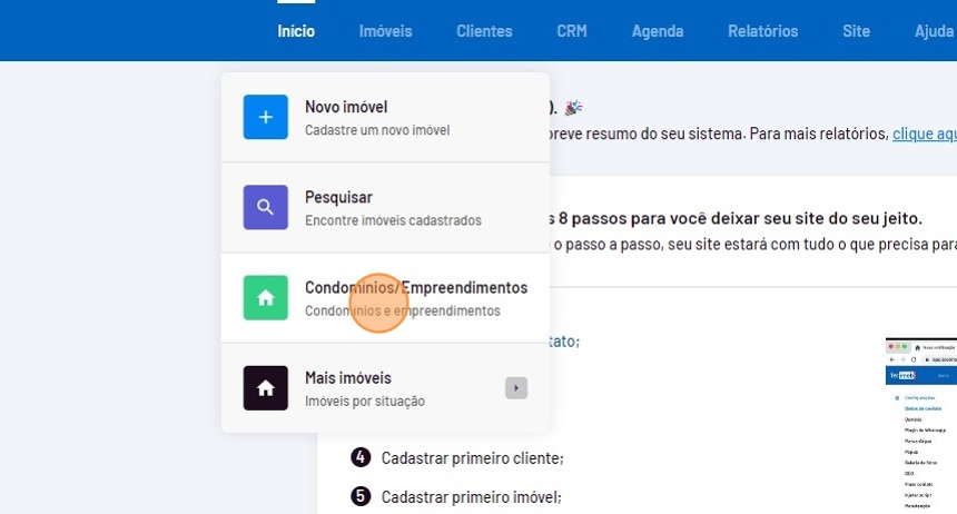 - Passe o mouse sobre o menu "Imóveis" e clique em "Condomínios e empreendimentos".