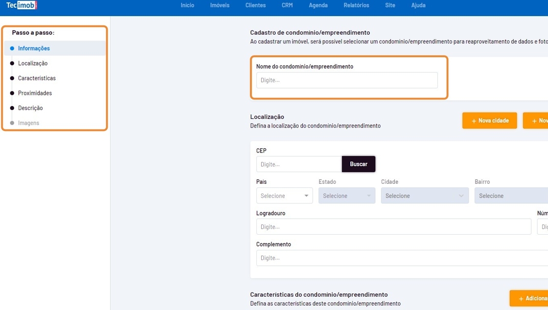 - Cadastre a localização do condomínio/empreendimento.