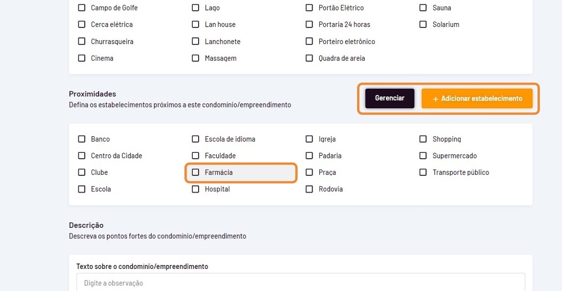 - Faça uma descrição sobre o condomínio/empreendimento.