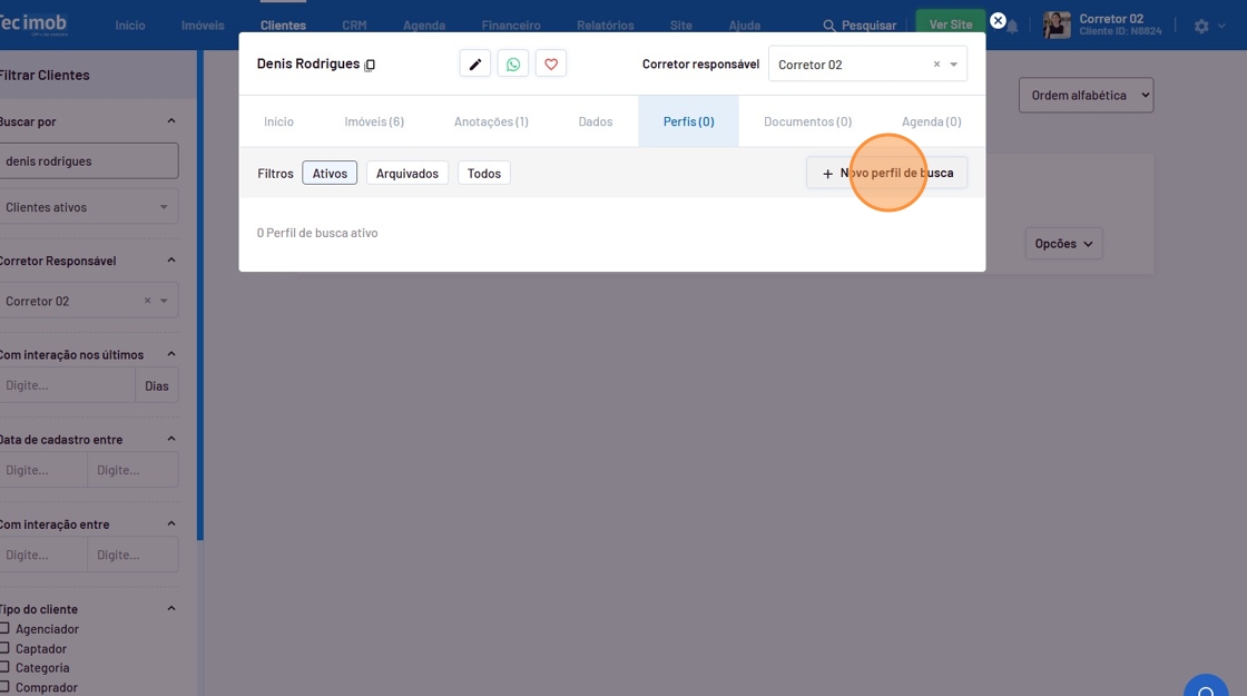 Para cadastrar perfil de busca para seus clientes, siga estes passos: