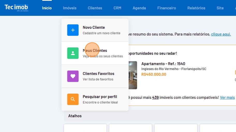 - Passe o mouse sobre o menu "Clientes" e clique em "Meus Clientes".