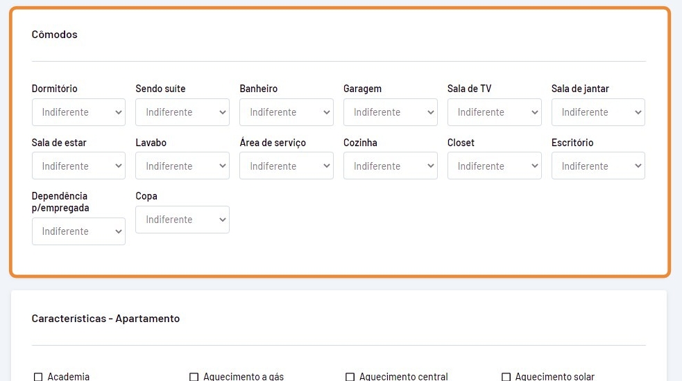 - Selecione o tipo de imóvel que seu cliente está buscando.