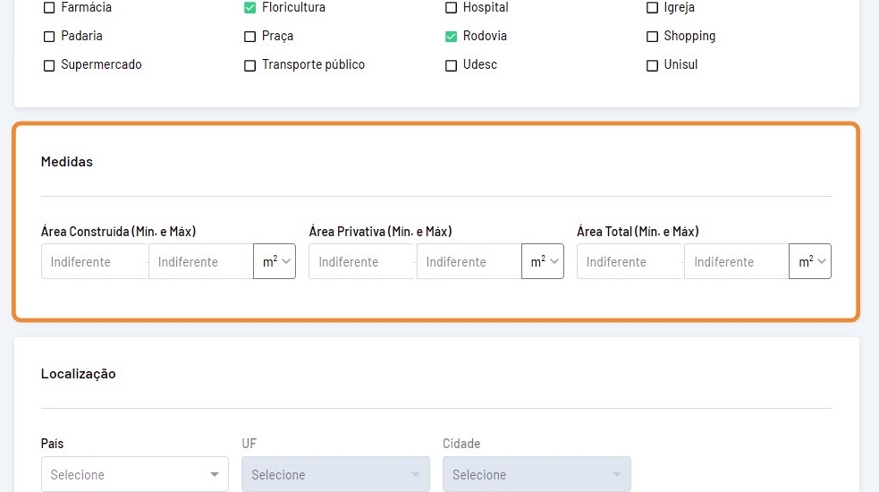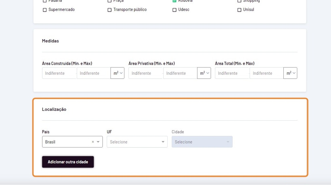 Por mais que existam muitas informações para serem preenchidas, apenas tipo/subtipo, transação, valor mín/max e localização são obrigatórios para cadastrar um perfil de busca.