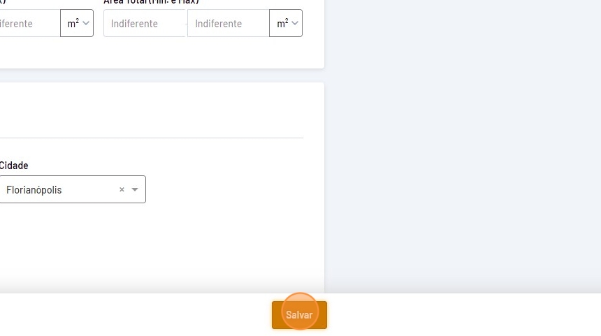 - Após preencher todas as informações relevantes que seu cliente está buscando em um imóvel, clique em "Salvar".