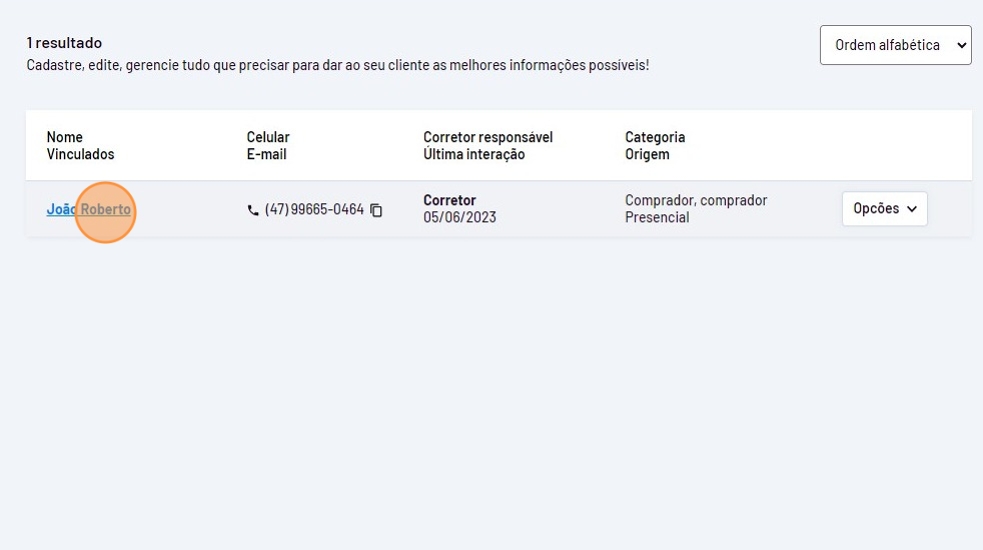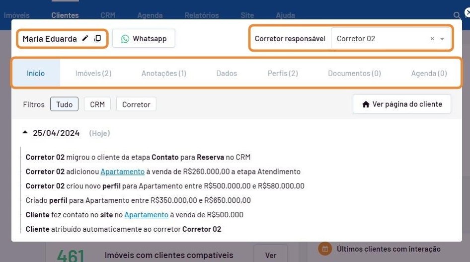 - Edite as informações, altere o corretor responsável e utilize o menu para verificar cada informação do seu cliente.