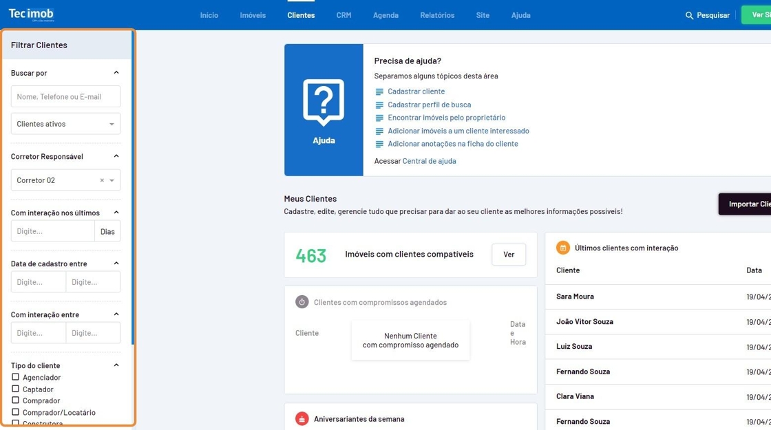 Para pesquisar seus clientes no sistema Tecimob, siga estes passos: