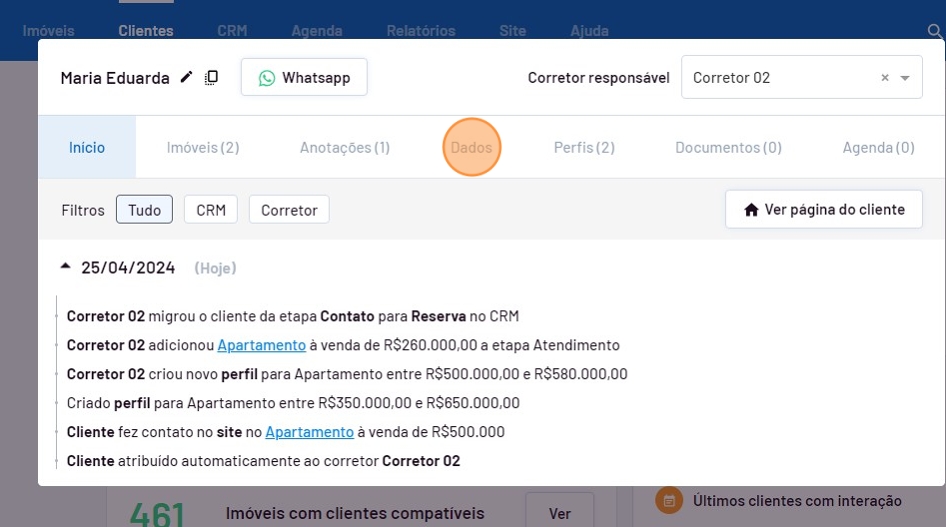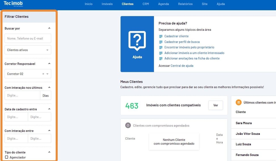 - Utilize o filtro no menu do canto esquerdo da sua tela para encontrar o cliente.