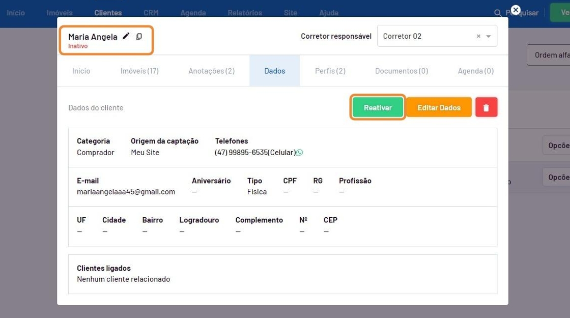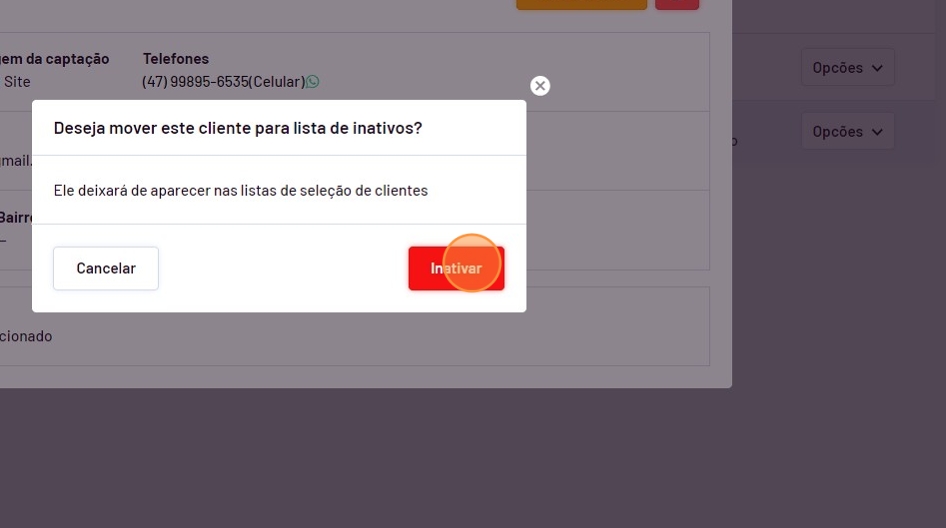 Você poderá reativa-lo a qualquer momento filtrando por "Clientes inativos".