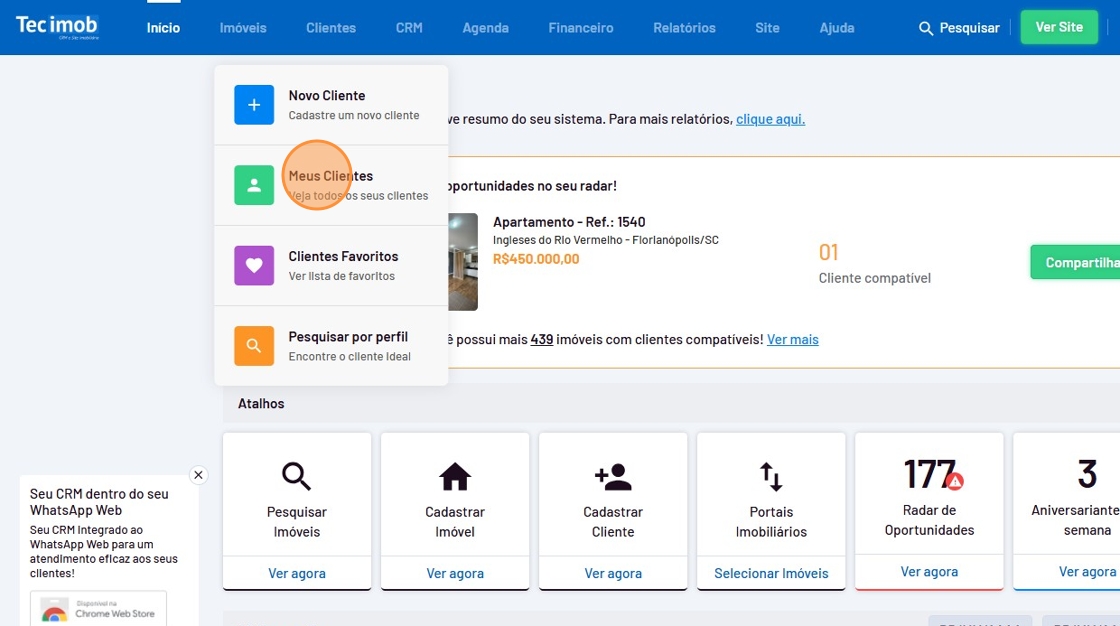 - Vá até o menu "Clientes" e clique em "Meus Clientes".