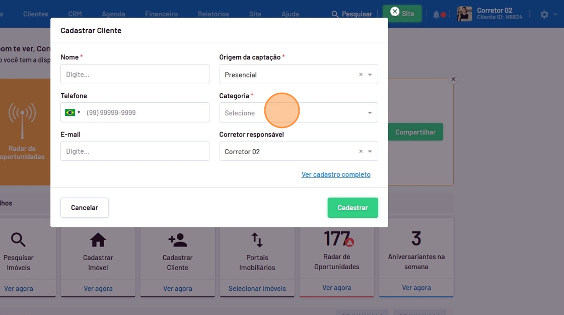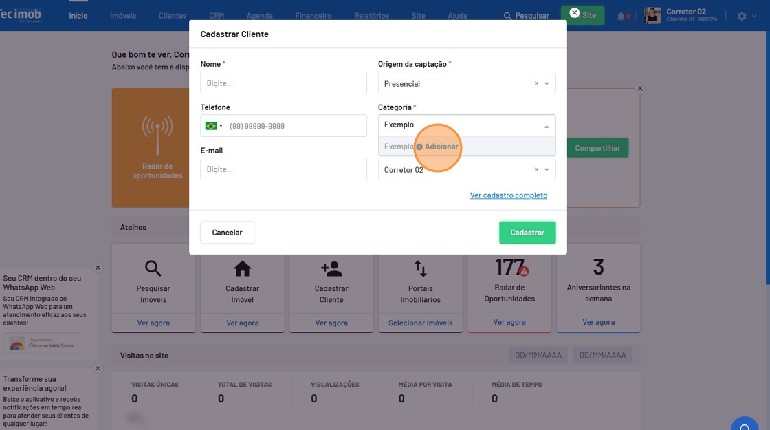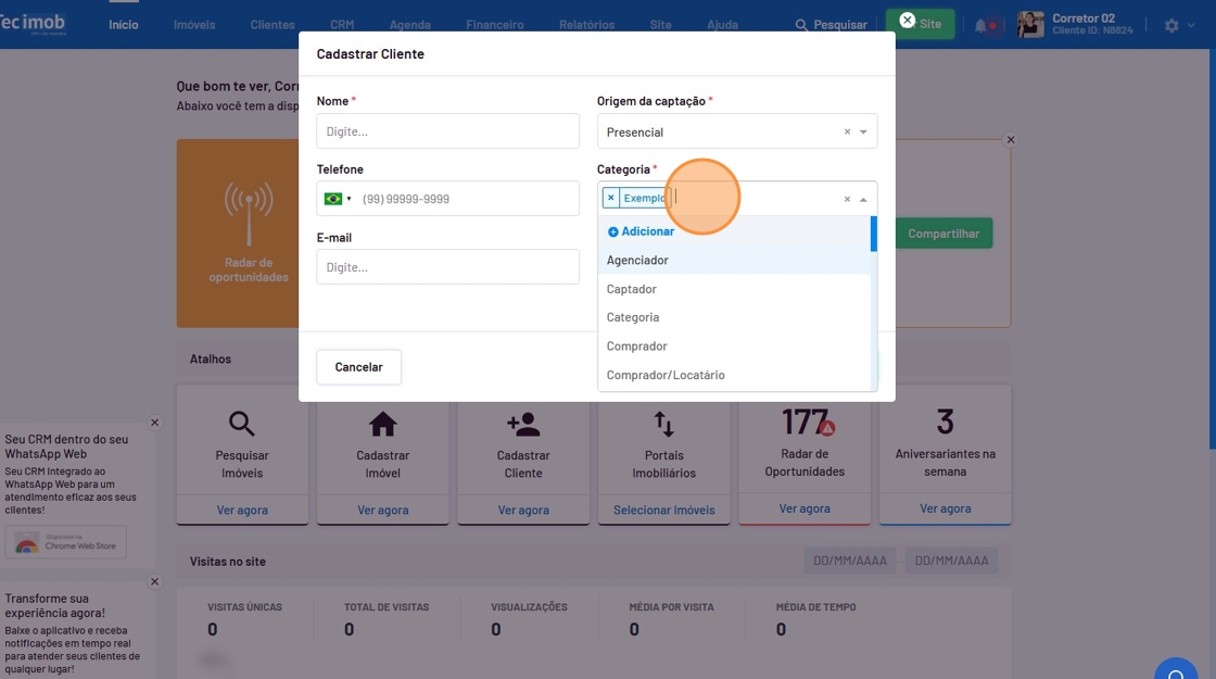 Para adicionar a categoria de clientes no sistema Tecimob, siga estes passos: