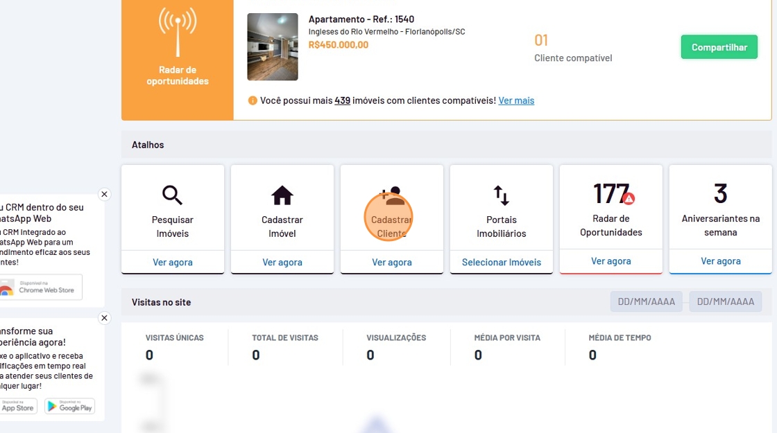 - Na tela inicial da plataforma, clique em "Cadastrar Cliente".