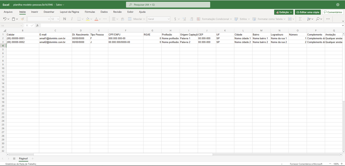 - Após baixar o arquivo, coloque os dados conforme os exemplos disponibilizados.