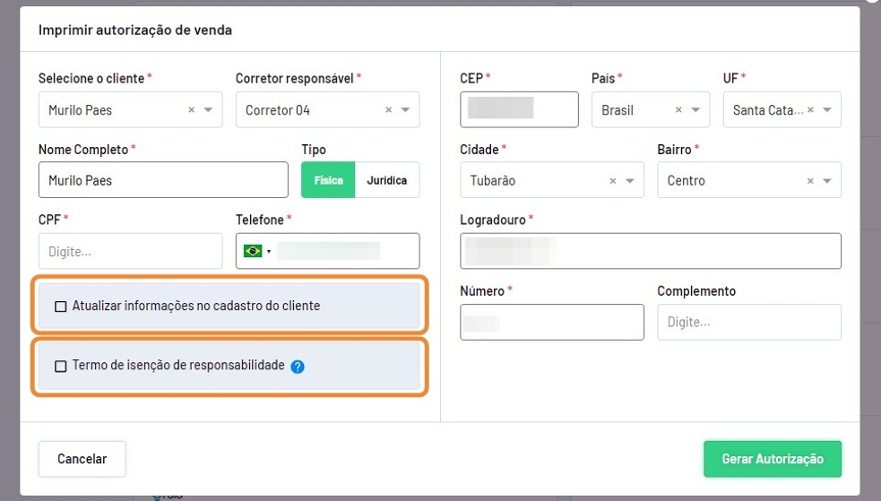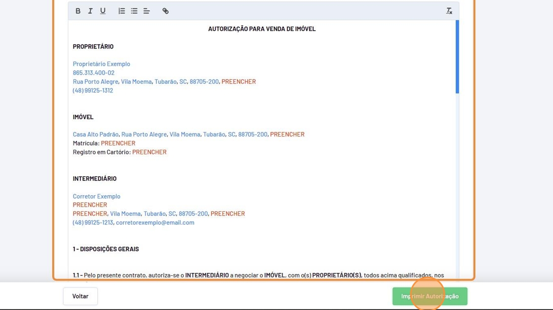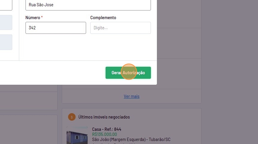 Tip: Para imóveis de locação o processo será o mesmo, porém o nome da opção será alterada de "Autorização de venda" para "Autorização de locação".
