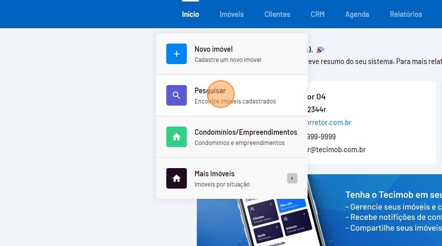 - Passe o mouse sobre o menu "Imóveis" e clique em "Pesquisar".