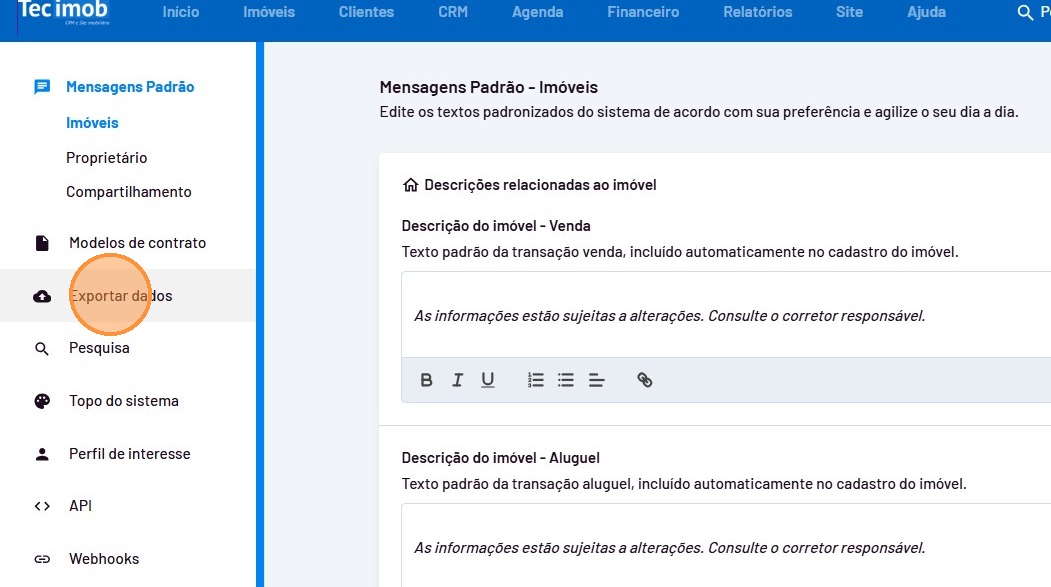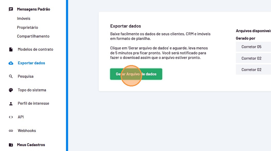 - No menu do canto esquerdo da página, clique em "Exportar dados".