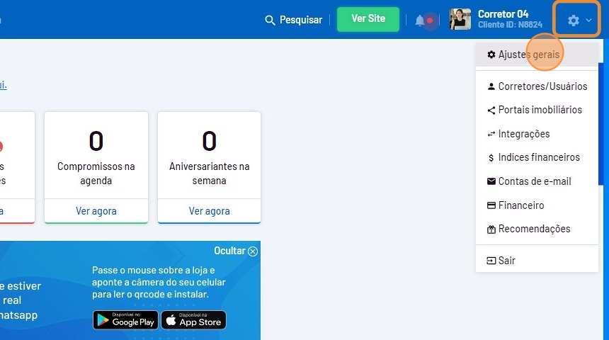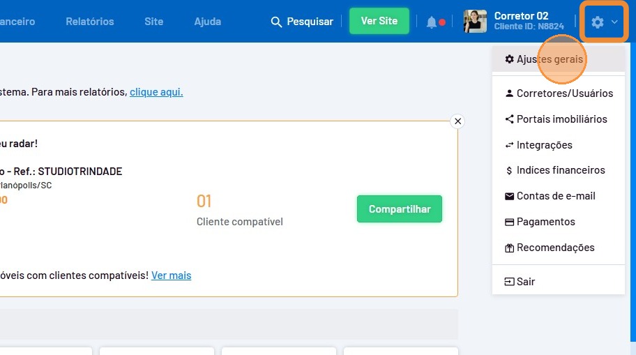 - Passe o mouse sobre o ícone de engrenagem no canto superior direito e clique em "Ajustes gerais".