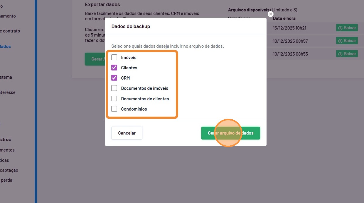 Para gerar backup dos seus dados no sistema Tecimob, siga estes passos: